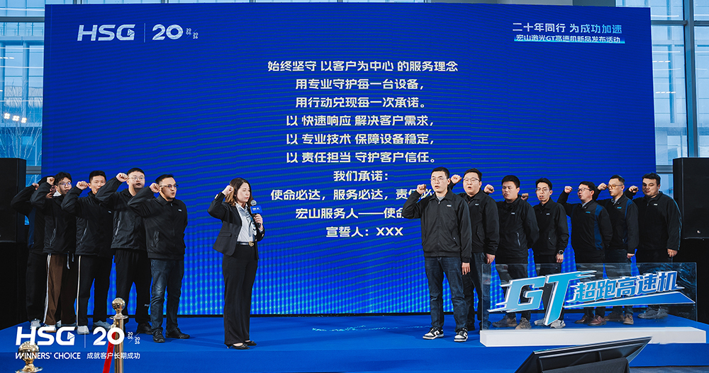 宏山激光中國(guó)大區(qū)服務(wù)負(fù)責(zé)人張會(huì)連表示:“帶著責(zé)任前行,以專(zhuān)業(yè)服務(wù)和技術(shù)、高效響應(yīng)與暖心服務(wù)踐行‘以客戶(hù)為中心’的理念,用行動(dòng)捍衛(wèi)品牌,用結(jié)果兌現(xiàn)承諾。”隨后,張會(huì)連帶領(lǐng)帶領(lǐng)服務(wù)團(tuán)隊(duì)代表登臺(tái)宣誓。鏗鏘有力的誓言回蕩在會(huì)場(chǎng),也展現(xiàn)出宏山服務(wù)團(tuán)隊(duì)以行動(dòng)守護(hù)客戶(hù)生產(chǎn)、持續(xù)提升服務(wù)品質(zhì)的堅(jiān)定決心。