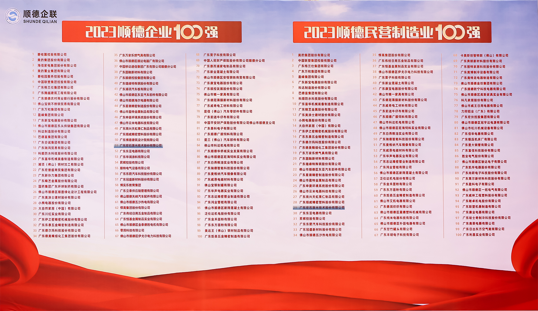 作為高新技術企業(yè),宏山激光憑借過硬綜合實力,繼2021、2022年連續(xù)上榜后,再次榮登順德企業(yè)100強榜,位列第51位。榮登2023順德民營制造業(yè)100強榜,位列第29位。這不僅僅是宏山激光持續(xù)穩(wěn)步發(fā)展的有力見證,更是對宏山激光追求高質量發(fā)展的一份肯定。