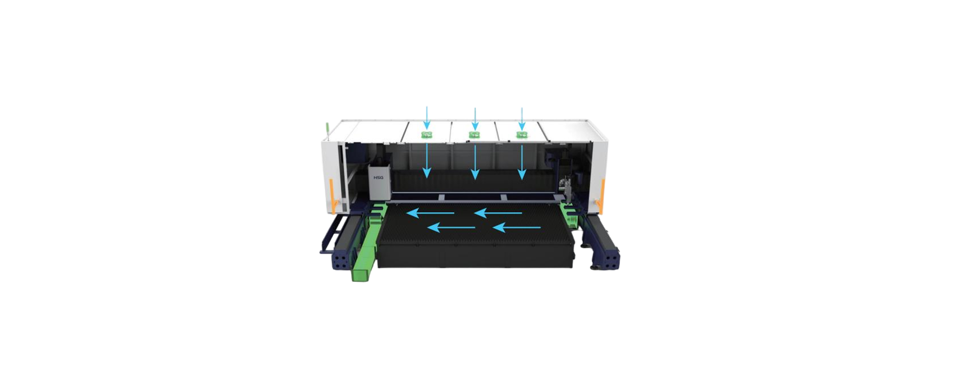 工作臺與床身的分離設計能有效隔離熱源,降低大功率激光切割過程中產生的熱量對傳動系統的影響,確保設備在高負荷工況下穩定運行,從而維持高精度與穩定性,并延長設備使用壽命。