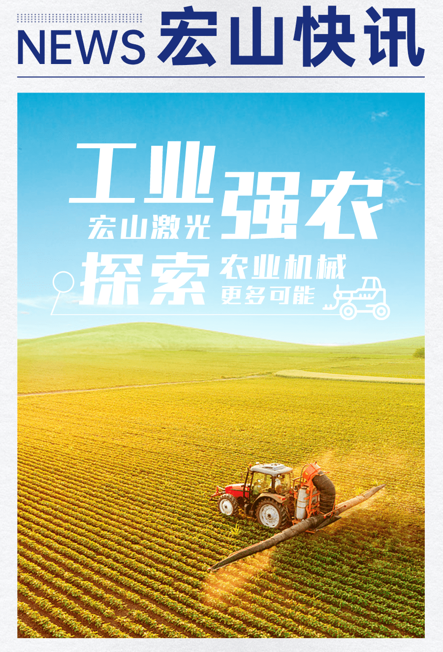 “三農”向好,全局主動,離不開生產工具的步步革新。未來,宏山激光將繼續(xù)與農機行業(yè)深化合作,以激光智造賦能農機革新,改善農業(yè)生產環(huán)境,助力實現農業(yè)全周期標準化、效率化、科技化、現代化生產,助力鄉(xiāng)村振興。