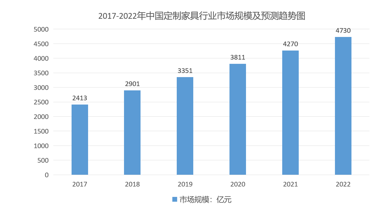 據中商產業(yè)研究院預測,2022年中國定制家具行業(yè)市場規(guī)模將達4730億元,伴隨著市場動態(tài)的變化,以及政策紅利的驅動,2022年進一步承接往年良好態(tài)勢,定制家具行業(yè)仍有一定的增長空間。