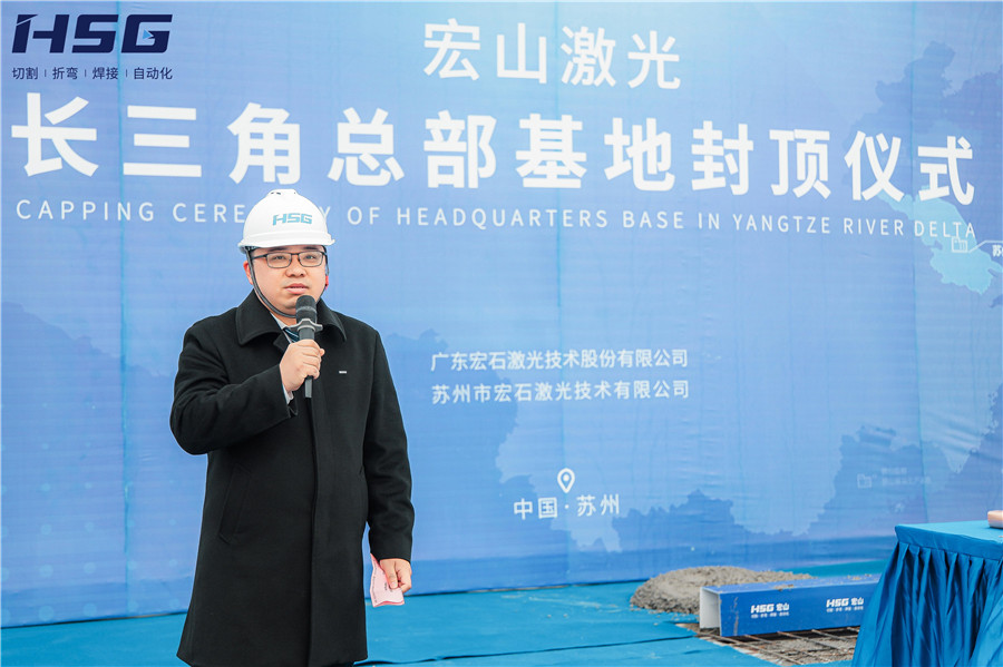 在聽取基地建設(shè)進(jìn)度匯報后,宏山激光董事俞宏標(biāo)先生為此次活動發(fā)表致辭,俞總對多方施工單位表達(dá)了感謝,并表示:長三角總部基地的建設(shè),是宏山激光國內(nèi)乃至全球布局發(fā)展的重要一環(huán),是宏山激光增資擴(kuò)產(chǎn)、擴(kuò)大企業(yè)實(shí)力、完善戰(zhàn)略布局的重要步驟。未來,長三角總部基地將扎根蘇州,面向華東、華北地區(qū),為用戶提供“家門口”的激光智能裝備服務(wù)。